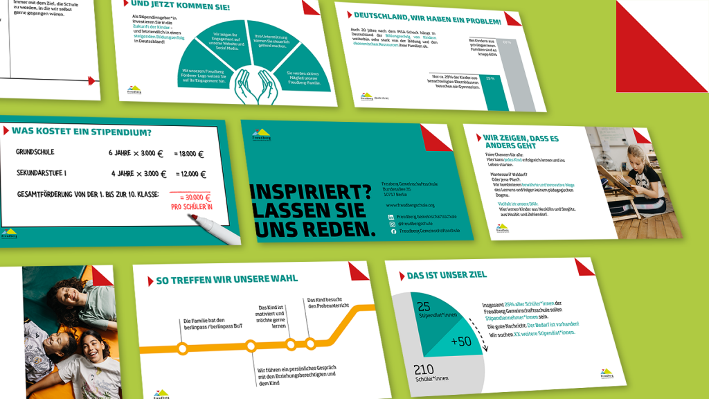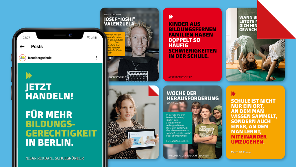 Durch die strategische Neuausrichtung wurde das Profil der Freudbergschule als engagierte und sozial verantwortliche Bildungseinrichtung deutlich geschärft. Die neue Kommunikation macht das Stipendienprogramm sichtbar und erzählt die Geschichte der Schule als Ort, an dem Vielfalt und Bildungsgerechtigkeit aktiv gelebt werden. Website, Social-Media-Kanäle und Materialien für die Ansprache von Fördermittelgebenden und Multiplikator:innen greifen nun inhaltlich und gestalterisch ineinander. Dadurch entsteht eine konsistente Kommunikation, die sowohl potenziellen Familien Orientierung bietet als auch Unterstützende und Öffentlichkeit anspricht. So konnte die Freudbergschule ihre Bildungsmission klarer vermitteln und ihre Position als sozial geöffnete Privatschule im bildungspolitischen Kontext stärker verankern.